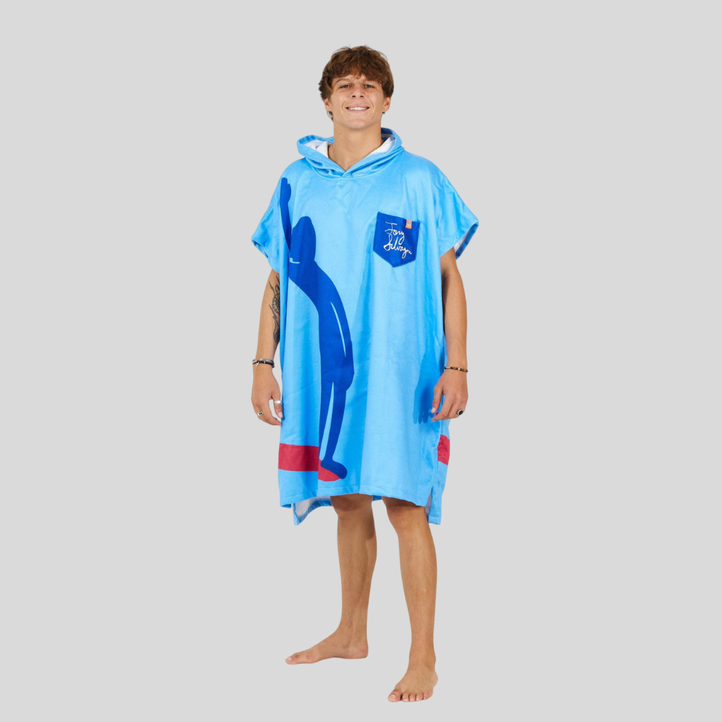 Conçu par le longboarder américain Tony Silvagni, ce poncho signature reflète parfaitement sa personnalité solaire et son amour du longboard. Avec ses couleurs vives et sa silhouette iconique en hang five soul arch, il rend hommage à l’élégance et à la fluidité de cette discipline.