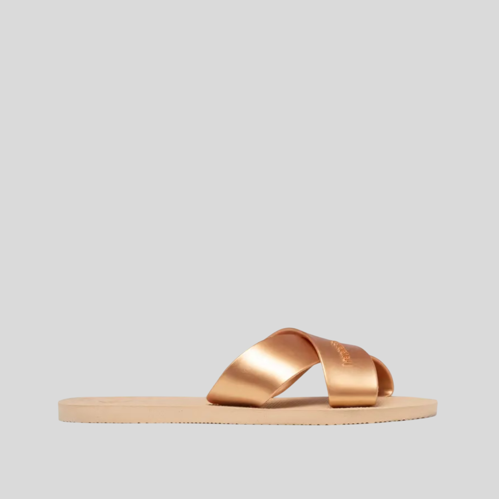 Les Aqua Slide Havaianas séduisent celles qui veulent allier allure décontractée et style estival. Avec leurs larges brides croisées offrant un maintien parfait et leur semelle en caoutchouc à l’amorti souple, ces sandales pour femme garantissent confort et élégance. Déclinées dans un coloris scintillant, elles ajoutent une touche de féminité et d’éclat à tous vos looks d’été.