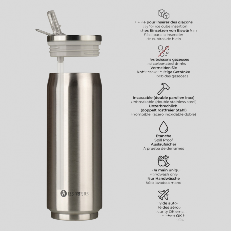 Pensée pour allier design et fonctionnalité, la canette isotherme Les Artistes Paris garde vos boissons à la température idéale tout en réduisant votre impact environnemental.