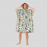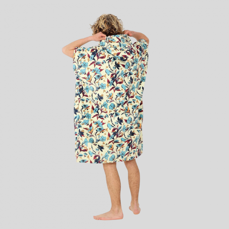 Ce poncho arbore un imprimé sauvage et coloré inspiré du bourdonnement des colibris. Mi-coton, mi-polyester, il est léger, doux et offre une liberté de mouvement totale grâce à sa coupe ample.